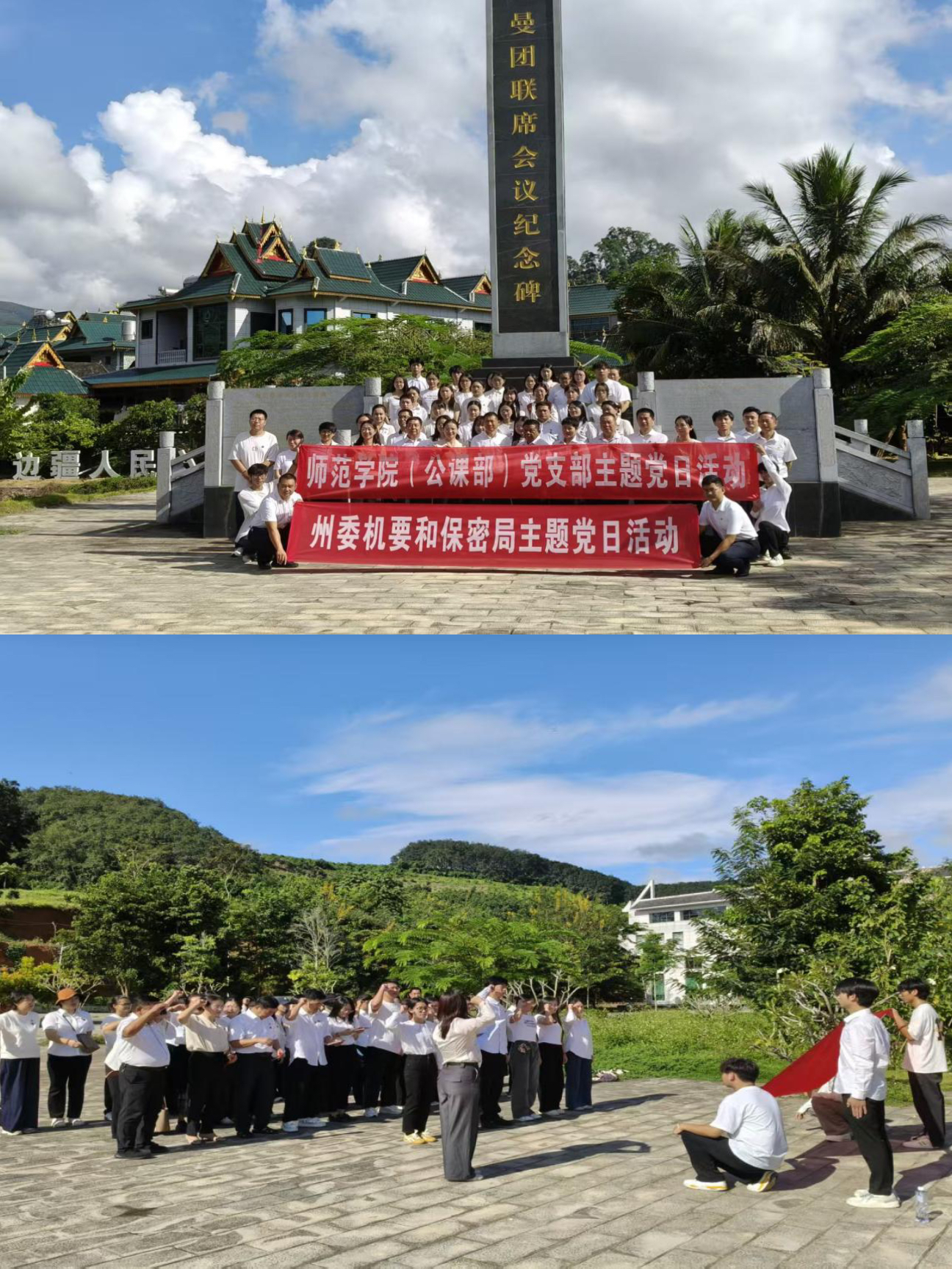 2025年10月17日上午,西双版纳职业技术学院师范学院(公课部)党支部组织党员干部、学生干部及入党积极分子前往曼团联席会议纪念碑和西双版纳历史馆,开展了一场意义深刻的主题党日活动。此次活动旨在让党员干部、学生干部及入党积极分子深入学习曼团联席会议“民族团结抗英”精神、西双版纳边疆革命史,深刻理解党在边疆地区的领导核心作用,感悟西双版纳多民族共同奋斗的革命历程,增强党员对“中华民族共同体意识”的认知,推动党员在教学、科研中融入民族团结教育,强化党支部党员的初心使命与责任担当。