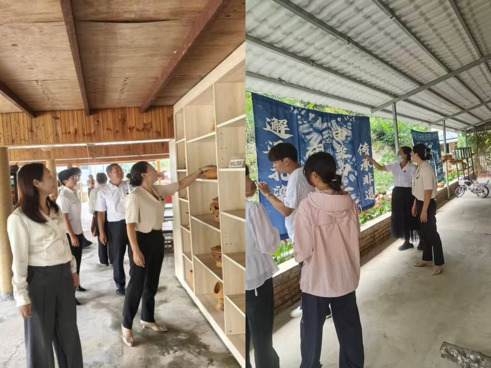 随后,党员干部们来到了非遗文化展览馆,近距离感受非遗文化的独特魅力。在陶艺工坊,看着转盘上逐渐成型的傣族土陶,党员教师与学生代表忍不住驻足交流制作技巧;在扎染体验区,蓝白交织的布料与民族纹样相映成趣,大家通过触摸织物、观察染色工艺,直观体会到非遗技艺背后蕴含的民族智慧与工匠精神。参观过程中,不少教师表示,这些鲜活的非遗资源可作为课堂上的实践素材,让学生更好地传承民族文化。