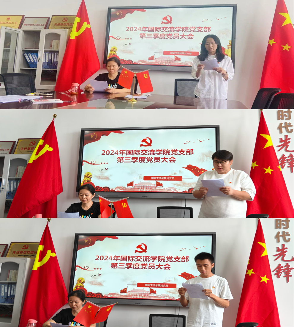 2024年7月9日,国际交流学院党支部于党员活动室407室召开了2024年第三季度党员大会,支部全体党员及发展对象参加了本次会议。