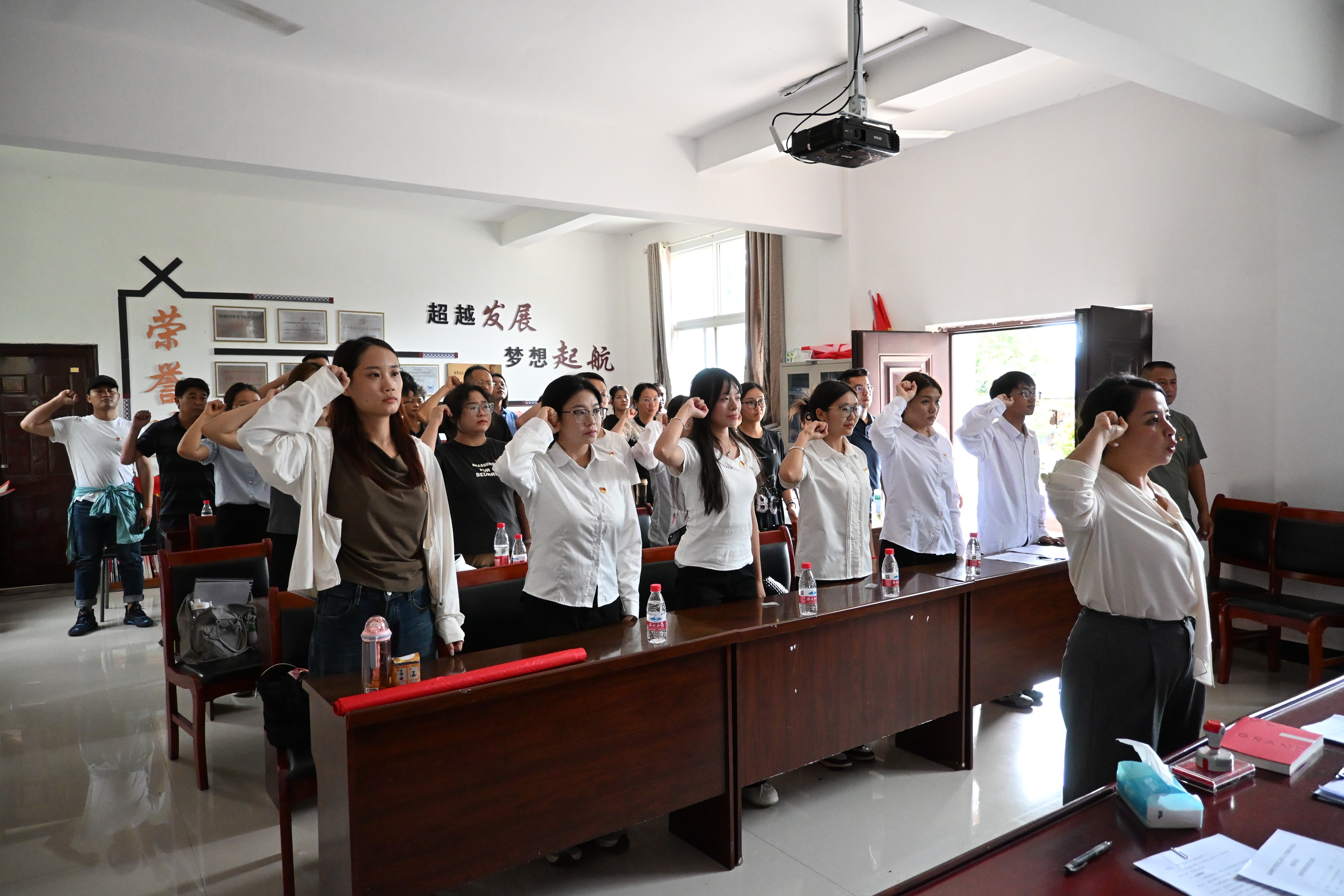 理论学习结束后,举行了预备党员入党宣誓仪式。新党员面向鲜红的党旗,举起右拳,许下为共产主义奋斗终身的誓言。同时,全体与会老党员一同重温入党誓词,在铿锵有力的誓言中,回溯入党初心,感受思想的洗礼和党性的淬炼,进一步坚定理想信念,牢记共产党员的政治责任和历史使命。