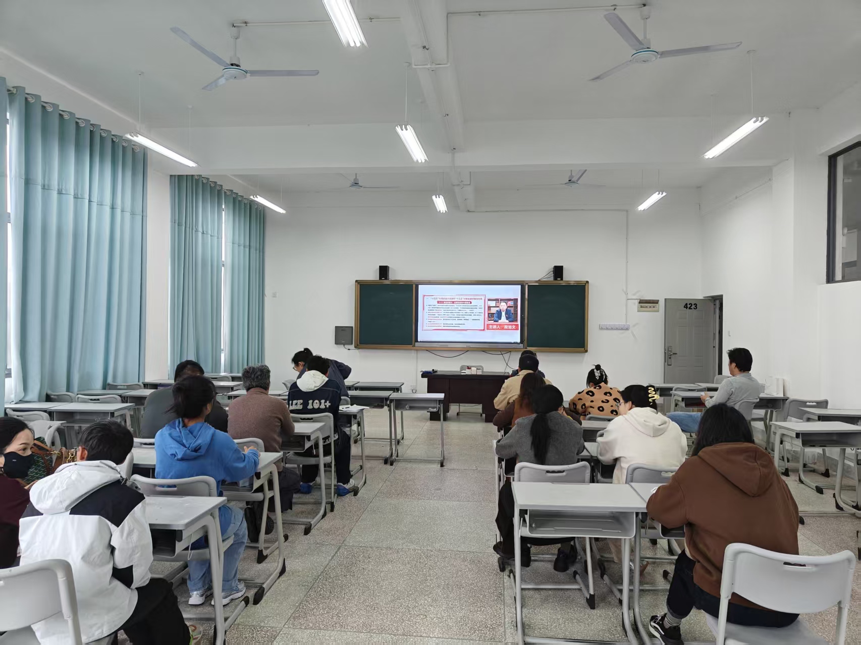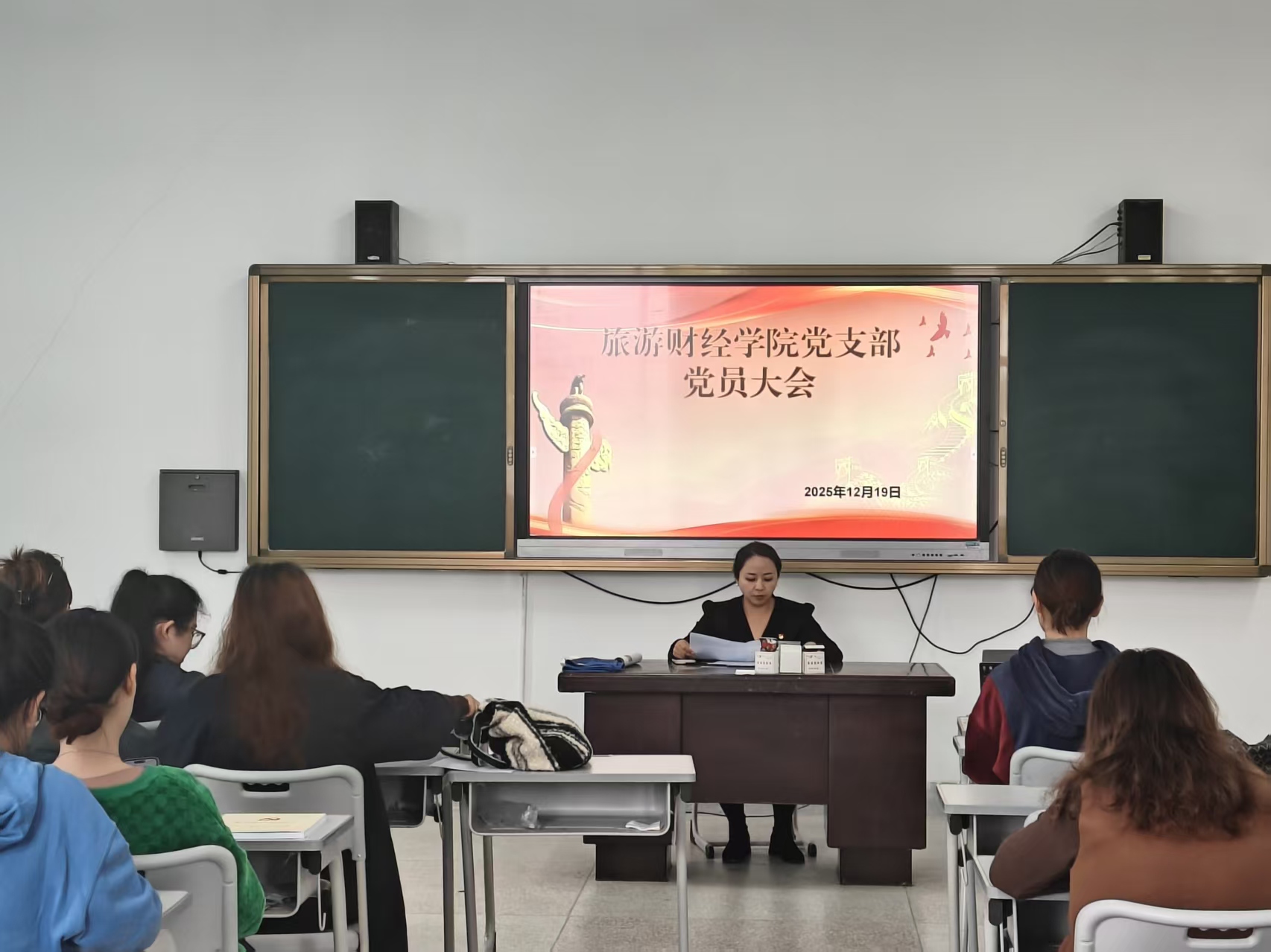 2025年12月19日,旅游财经学院党支部在旅财教学楼423教室召开2025年第四季度党员大会。会议由党支部书记刘珊珊主持,全体党员参会,围绕理论学习、工作部署等核心议题共学共研、共商发展。