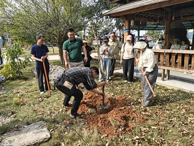 理论学习结束后,活动转入实践环节:结合“弘扬雷锋精神、共建绿色家园”主题,全体党员、入党积极分子和学生团员代表共同开展“我为乡村添新绿”义务植树活动,两个支部在预定区域共植友谊树。紧接着,在党员教师带领下,入党积极分子和学生团员们开展村容村貌整理活动,对大卡老寨主要道路、公共活动场所进行全面清扫,用实际行动践行雷锋精神,展现了新时代青年的良好风貌。活动过程中,志愿者们向村民宣传环保知识和生态文明观,倡导文明健康的生活方式,共同打造干净整洁的美丽乡村。