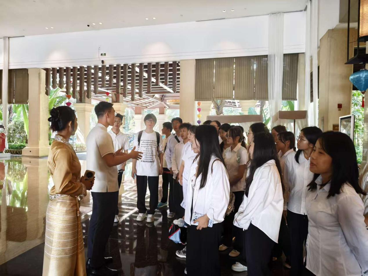 下午三时,师生抵达本次行程第三站——西双版纳云投喜来登大酒店。在酒店管理团队的陪同下,同学们系统参观了大堂接待区、行政酒廊、康乐中心、室内外泳池、婚宴场地、特色西餐厅等重要功能区,直观了解国际品牌酒店的空间规划理念、服务流程标准和设施配置要求。