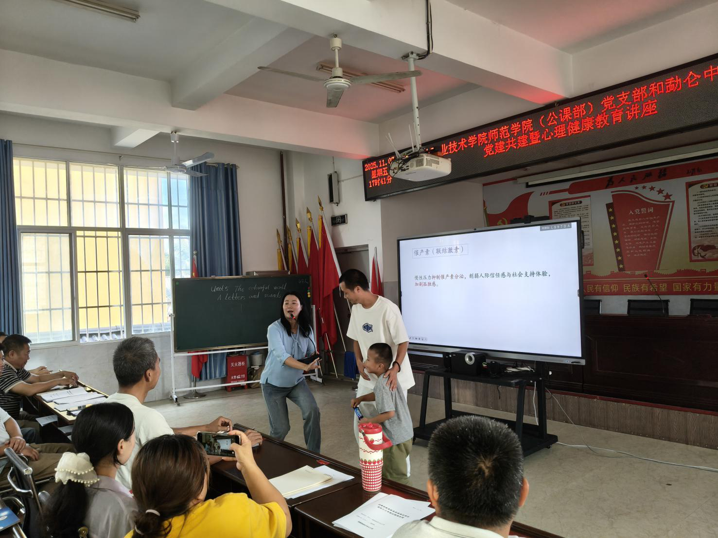 2025年11月7日,师范学院(公课部)党支部以 “发挥专业优势、服务基础教育” 为宗旨,组织心理健康教育骨干教师,赴勐仑中心小学开展心理健康教育专题社会服务,为该校 125名一线教师送上精准化、实用性的心理赋能培训。?