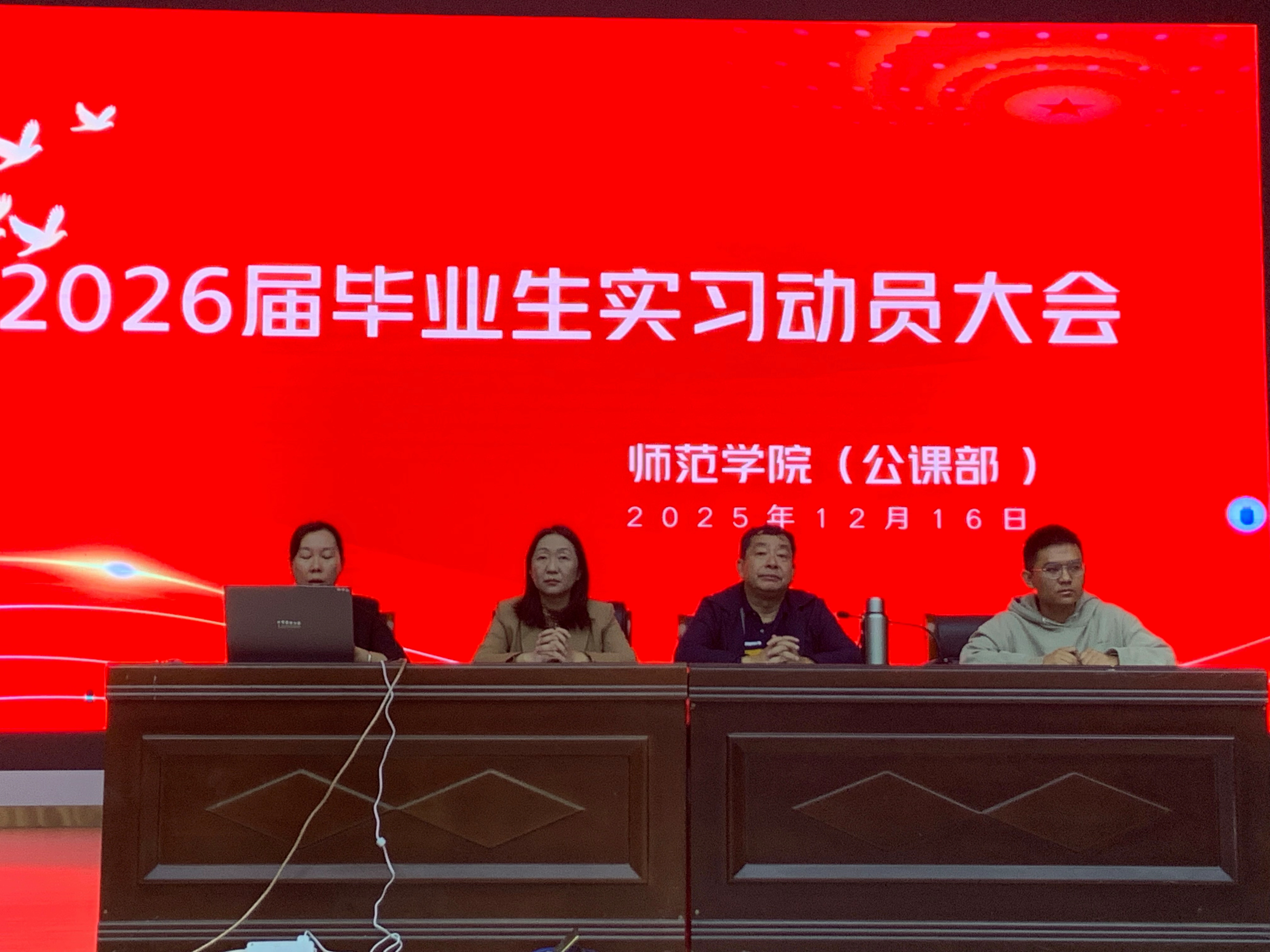 为扎实推进2026届毕业生岗位实习工作,引导学生明确实习任务与要求,师范学院(公课部)于2025年12月16日晚在学院报告厅分两场召开实习动员大会,覆盖全体2026届毕业生。