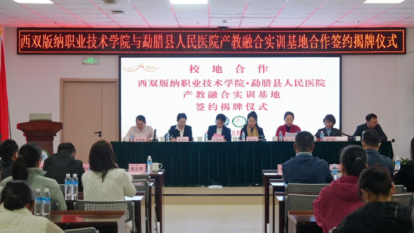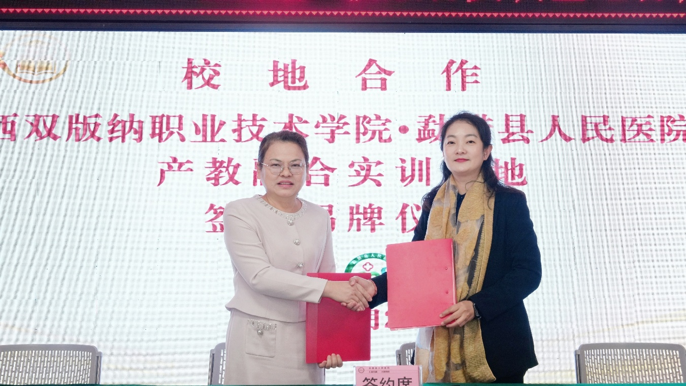 为积极响应国家健康中国战略,深化医教协同,服务地方发展,2025年12月26日,西双版纳职业技术学院与勐腊县人民医院举行产教融合实训基地合作签约暨揭牌仪式。学院党委委员、副院长毛卫红,医学院院长高婧娴、副院长彭志仙参加活动。