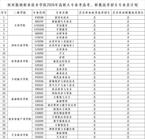 西双版纳职业技术学院招生热线:0691-8983062、8983035、2122932