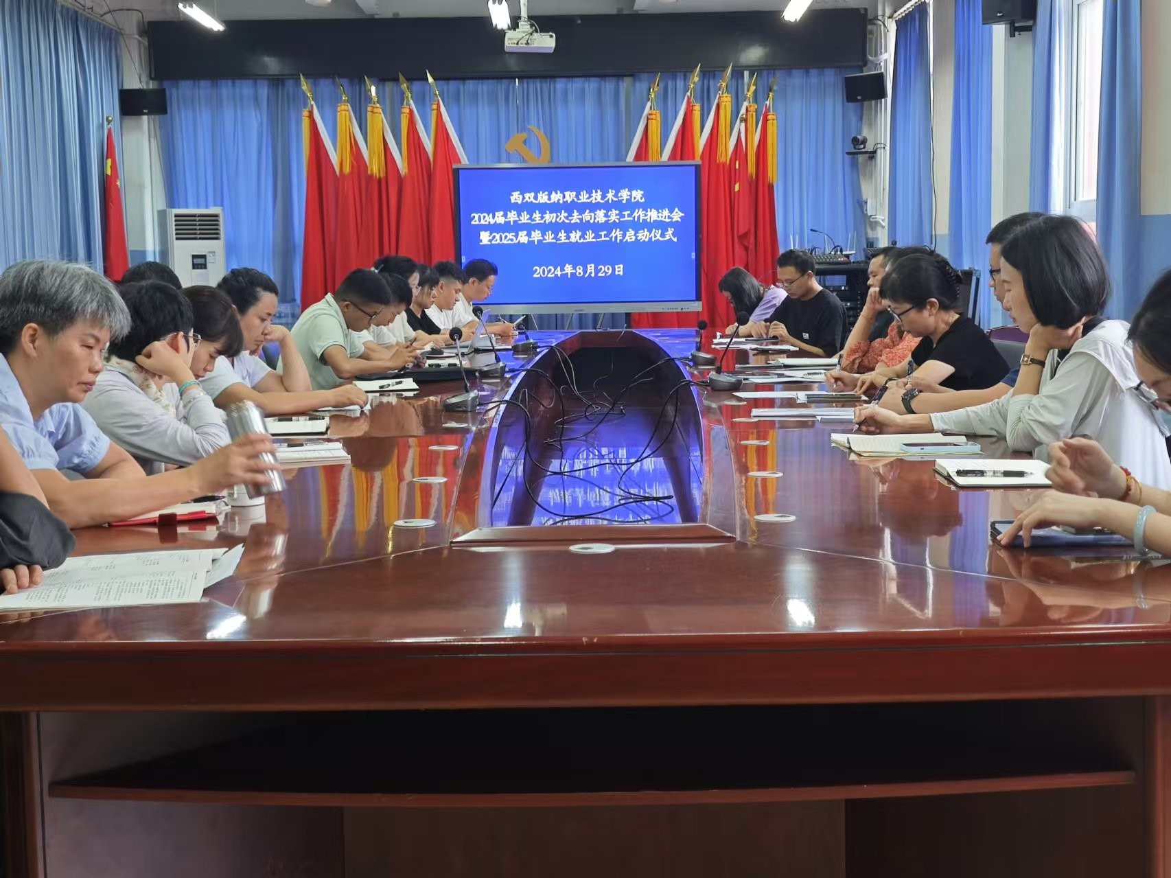 为及时跟踪掌握2024届毕业生初次去向落实情况,完成2024届毕业生初次去向落实目标任务,8月29日,学院在景洪校区第二会议室召开2024届毕业生初次去向落实工作推进会暨2025届毕业生就业工作启动仪式。学院党委委员、副院长毛卫红,招生就业科、二级学院负责人、就业信息员、部分毕业班班主任/辅导员参加会议。