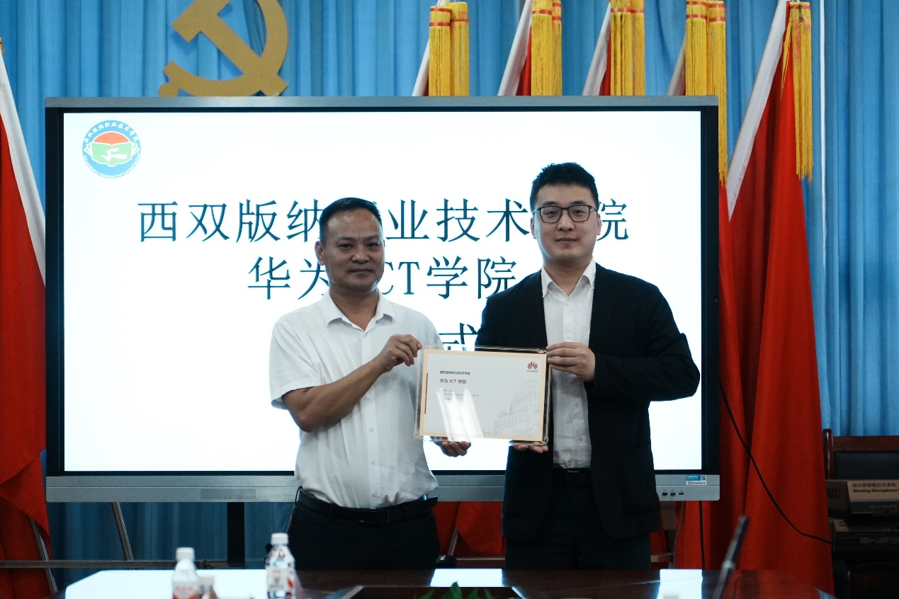 2025年10月30日,西双版纳职业技术学院华为ICT学院揭牌仪式在景洪举行。华为技术有限公司,学院党委书记李应德、党委副书记、院长邓小娟、学院教务科、招生就业科、办公室(党委巡察办)负责人、云南翰德教育产业发展集团董事长何永济及商务智能产业学院教师代表等共同出席活动。学院党委书记李应德、华为技术有限公司云南省教育医疗行业总经理于冬共同参与授牌。