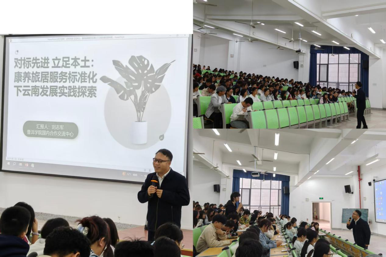11月23日培训启幕。普洱学院刘志军副教授以“康养旅居服务标准化建设与海南经验借鉴”为题,结合海南康养产业发展案例,解析康养旅居服务核心标准与运营逻辑;张新华副教授则聚焦“旅居云南”品牌打造,从生态资源、民族文化等维度,阐述了云南文旅产业高质量发展的路径与方向,让学生深刻认识地方特色资源的行业价值。