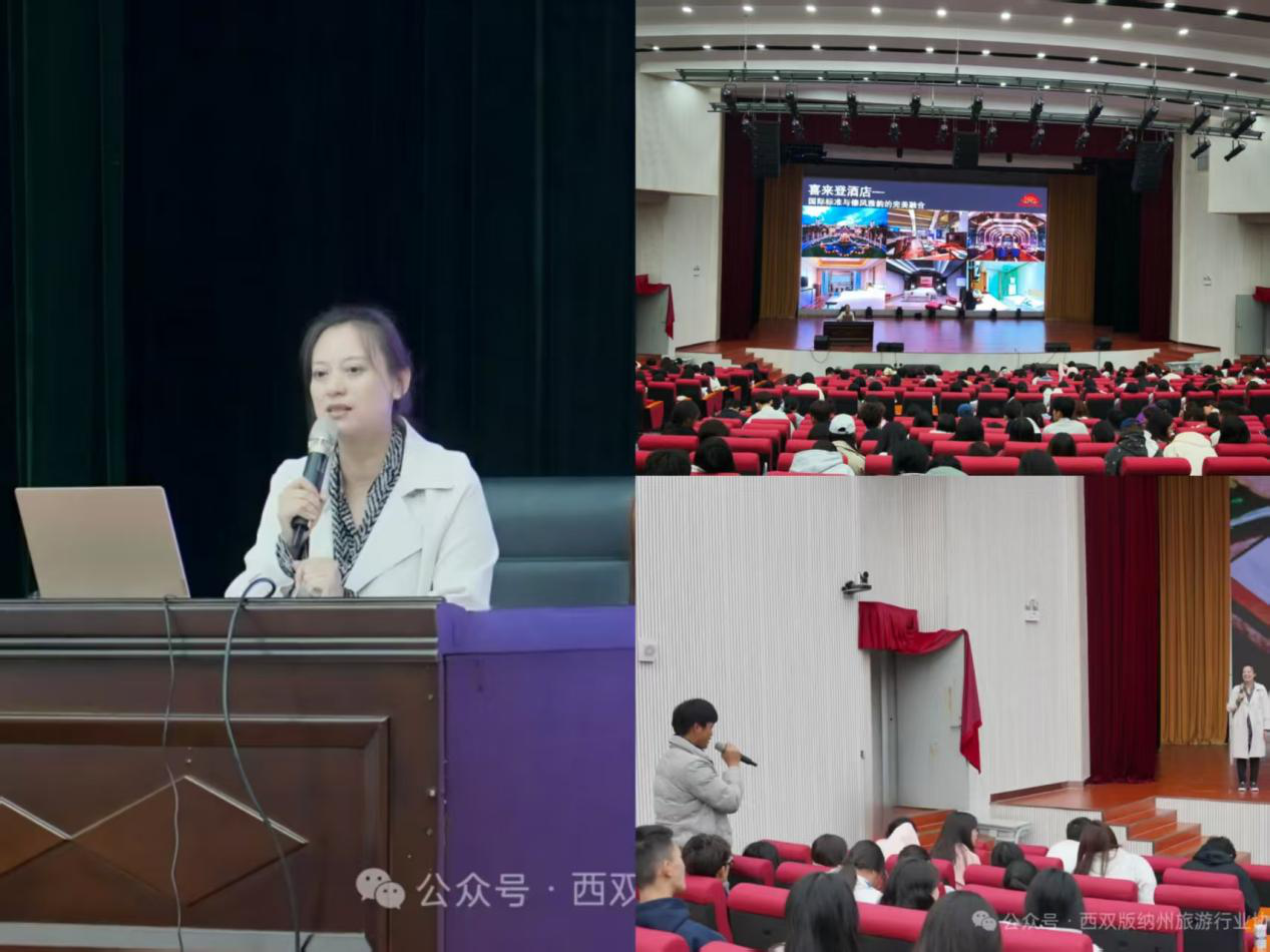 西双版纳安纳塔拉度假酒店丁鹰总经理以“精研酒店管理,赋能职业启航”为题,结合国际品牌酒店管理经验,分享酒店运营核心工作心得,为学生职业发展提供具体指导。普洱学院陈洪兵副教授则从“新质生产力”视角切入,剖析酒店业数字化、绿色化变革趋势,提出人才培养创新方向,帮助学生把握行业发展脉搏,明确能力提升重点。