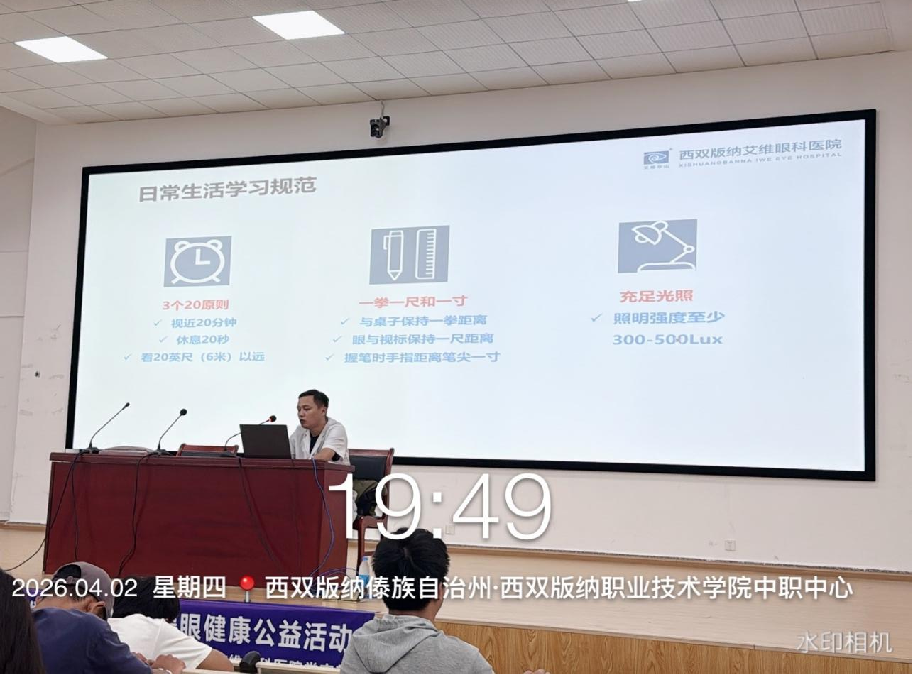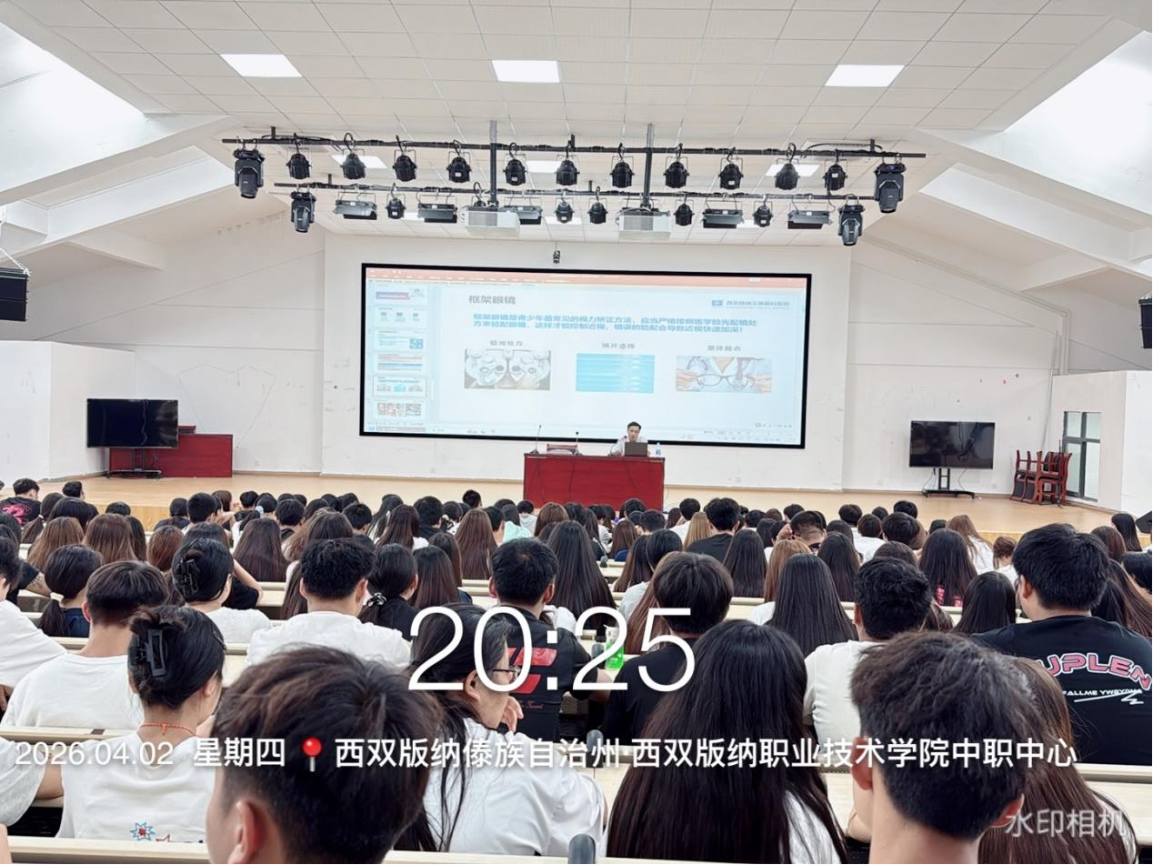 为深入贯彻落实国家青少年近视防控工作要求,全面掌握学生视力健康状况,普及科学护眼知识,引导学生养成良好用眼习惯,西双版纳职业技术学院(以下简称“学院”)于2026年3月30日起,有序开展2026年春季学期青少年视力筛查活动,并于筛查结束后特邀西双版纳艾维眼科医院专家,举办“青少年近视防控科普知识讲座”专题讲座。