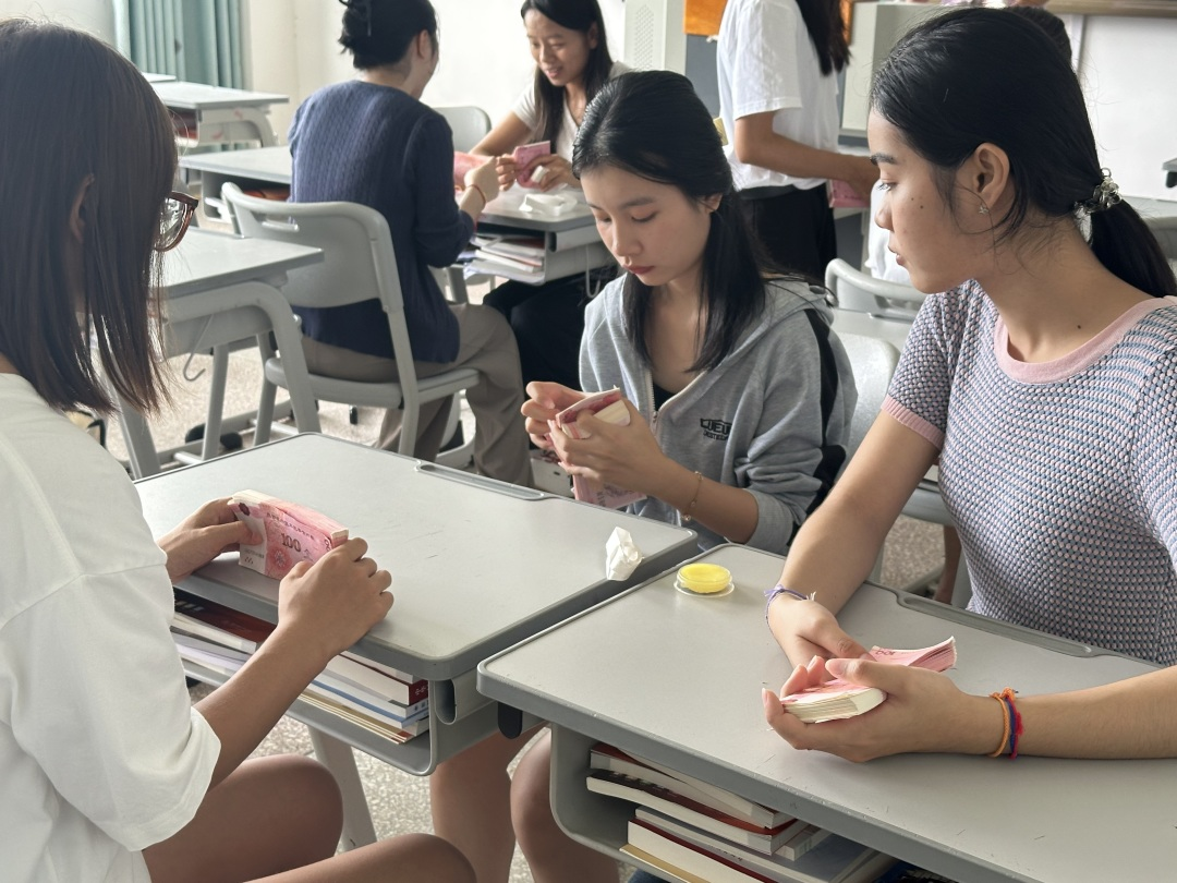 2025年9月11日下午,旅游财经学院于教学楼212教室成功举办第二期中老花样点钞技能交流活动,旨在持续推进国际教育交流,促进中老学生互学互鉴。活动由该院奎琳老师指导,西双版纳职业技术学院留学生与旅游财经学院大数据与会计专业学生共同参与,重点开展“花样点钞——五指拨动法”教学交流。