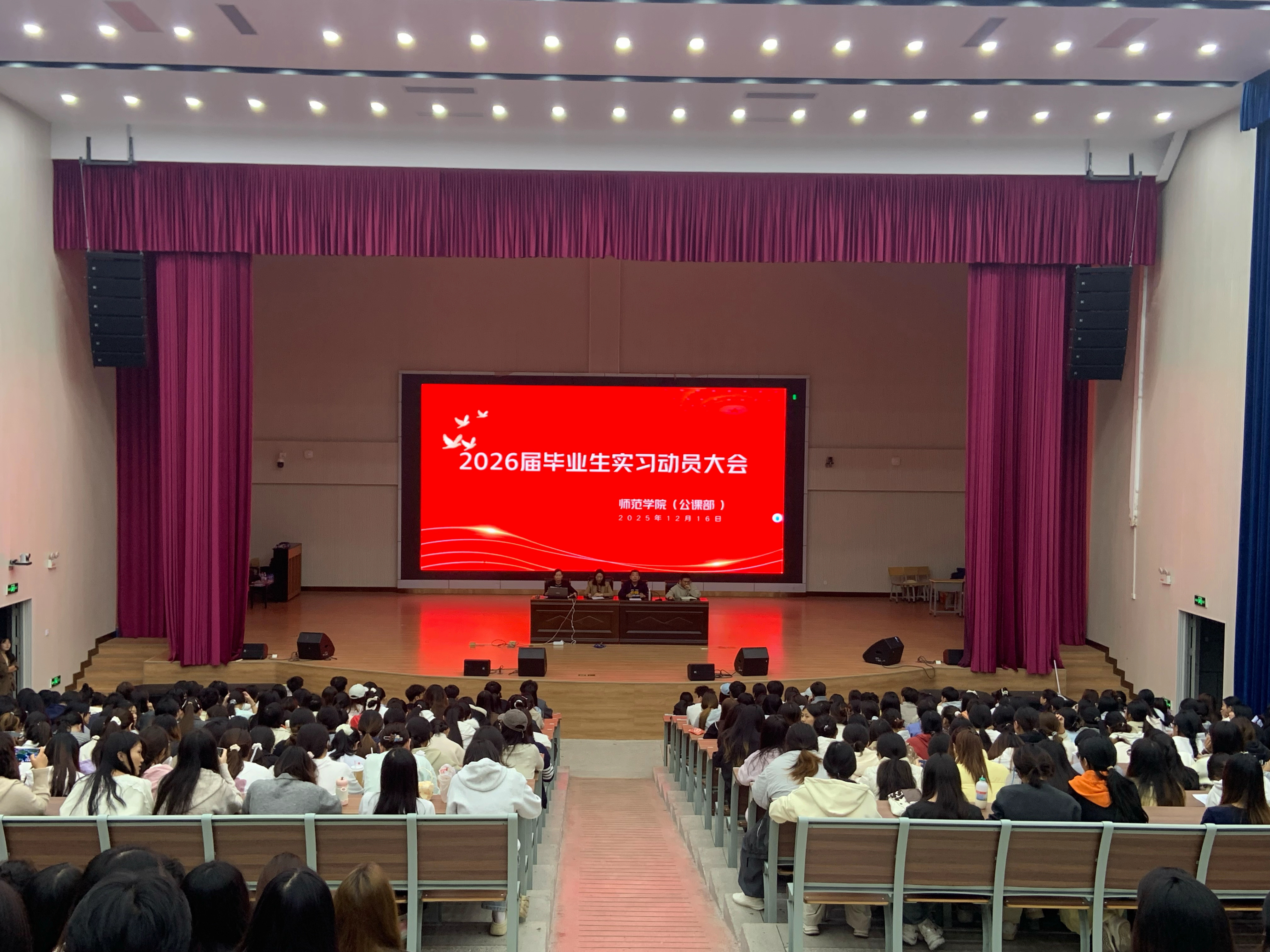 为扎实推进2026届毕业生岗位实习工作,引导学生明确实习任务与要求,师范学院(公课部)于2025年12月16日晚在学院报告厅分两场召开实习动员大会,覆盖全体2026届毕业生。