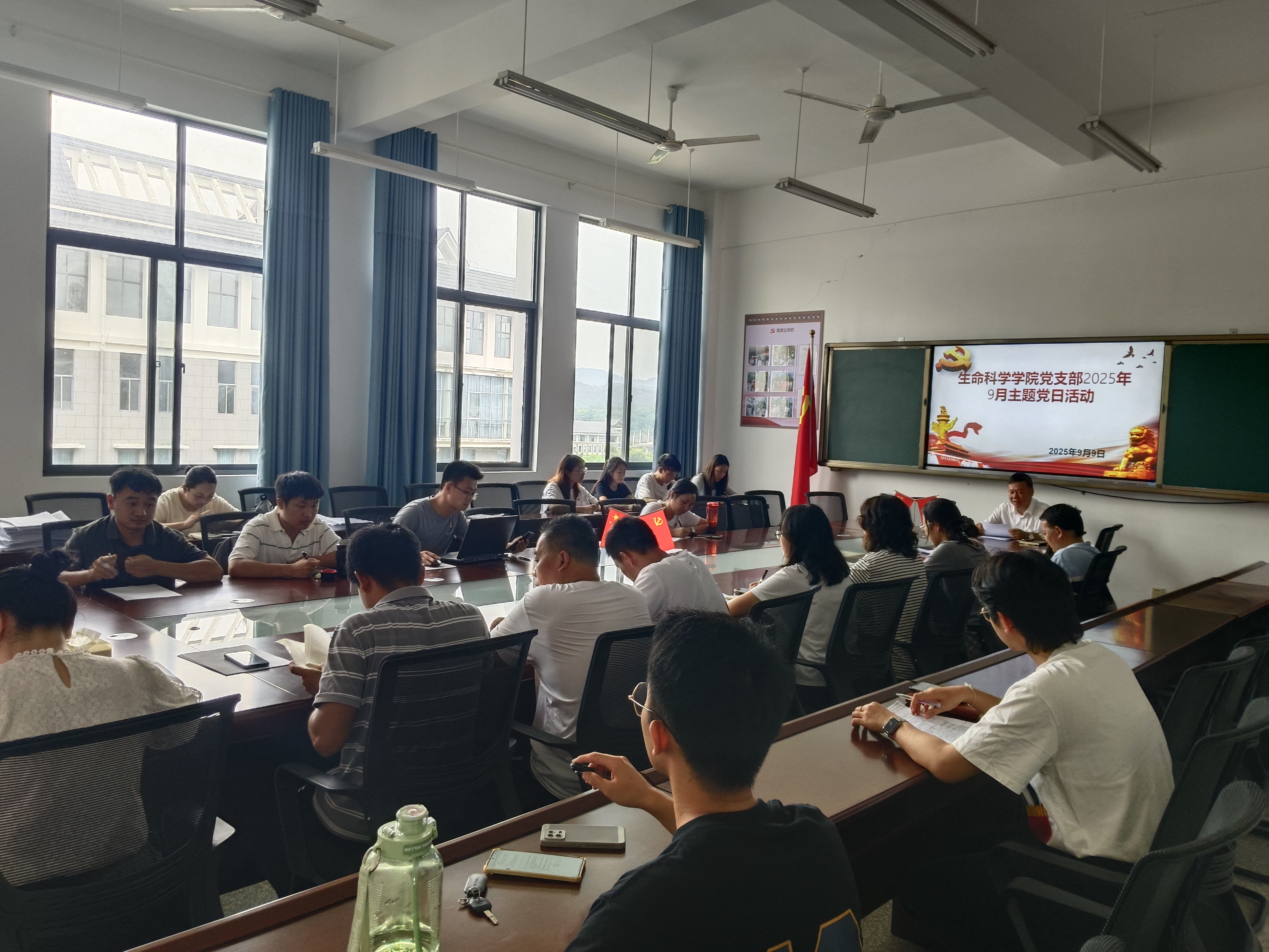 2025年9月9日,生命科学学院党支部在生命科学学院教学楼408党员活动室开展2025年9月主题党日活动,生命科学学院全体党员参加。本次主题党日活动围绕主题学习、网评工作交流、学习教育总结等内容展开。