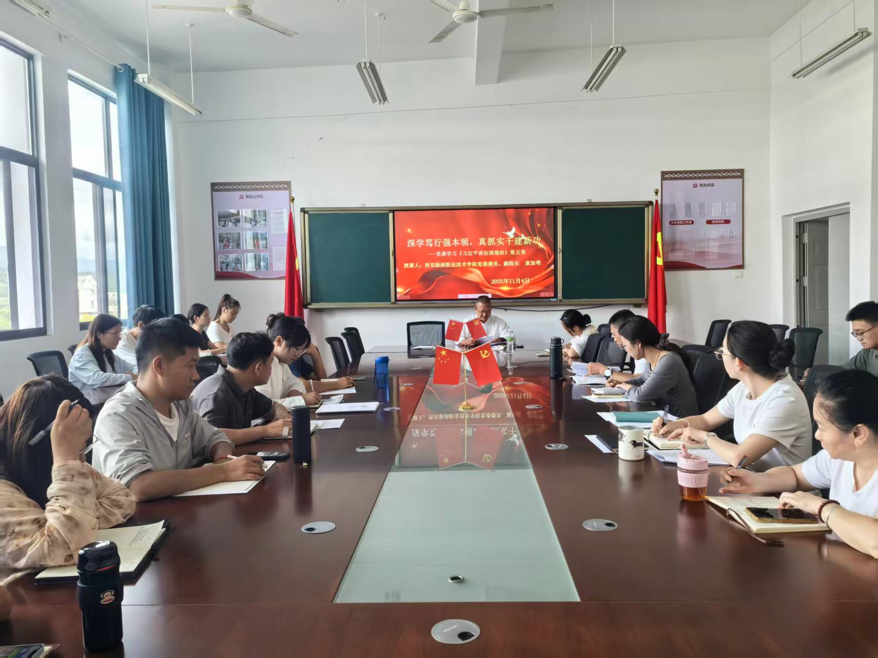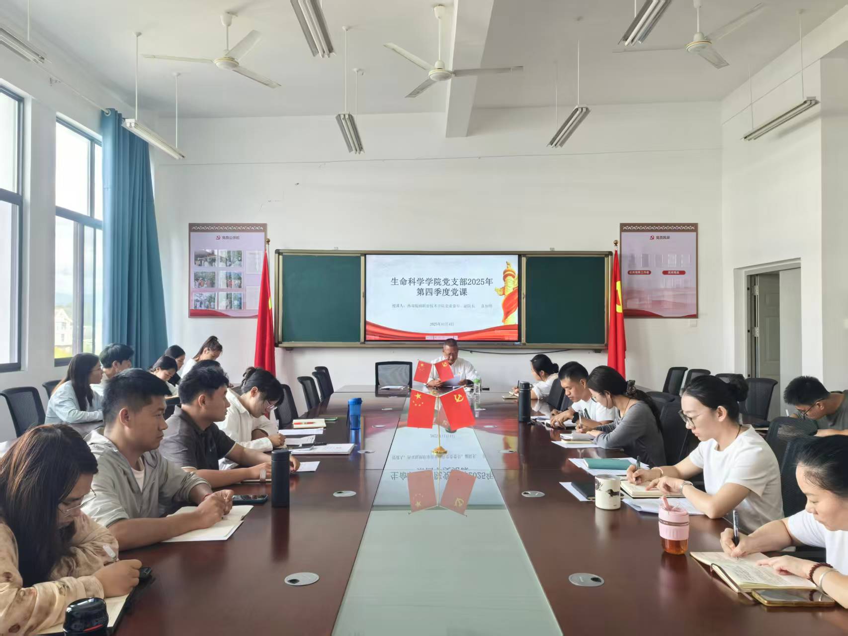 11月4日下午,生命科学学院党支部在党员活动室开展2025年第四季度党课,本次党课由西双版纳职业技术学院党委委员、副院长袁加明主讲,生命科学学院全体党员参加。