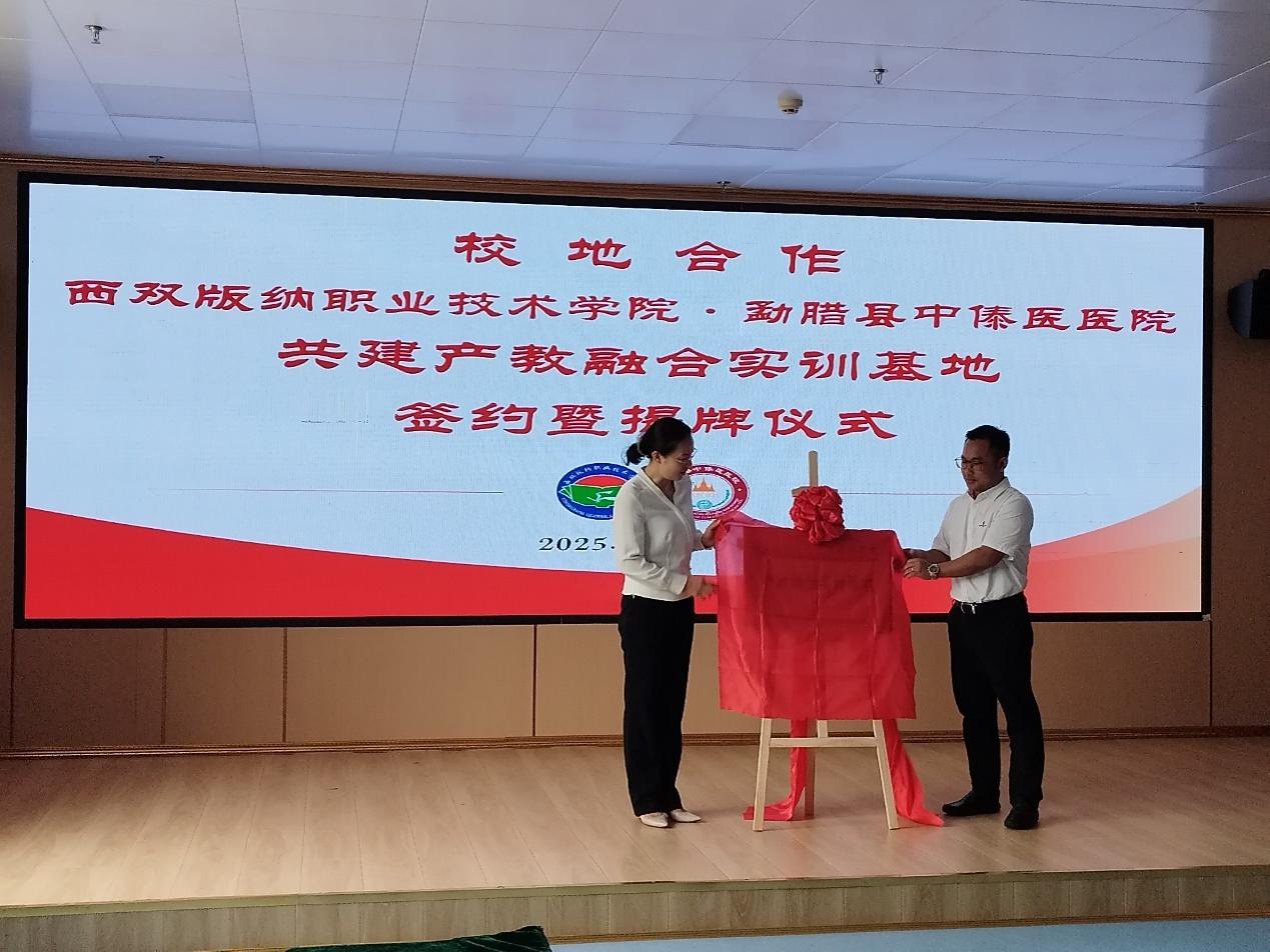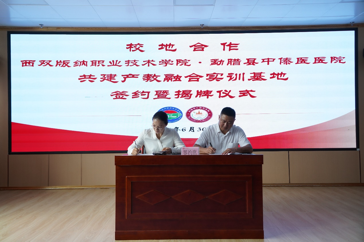 6月30日,西双版纳职业技术学院与勐腊县中傣医医院举行产教融合基地合作共建签约揭牌仪式。勐腊县委常委、县委组织部部长岩依香、勐腊县卫生健康局党委书记董春伟、西双版纳职业技术学院党委副书记、院长邓小娟、勐腊县中傣医医院院长彭旭出席仪式,西双版纳职业技术学院医学院、实验实训中心负责人、勐腊县中傣医医院领导班子及中层干部参加。