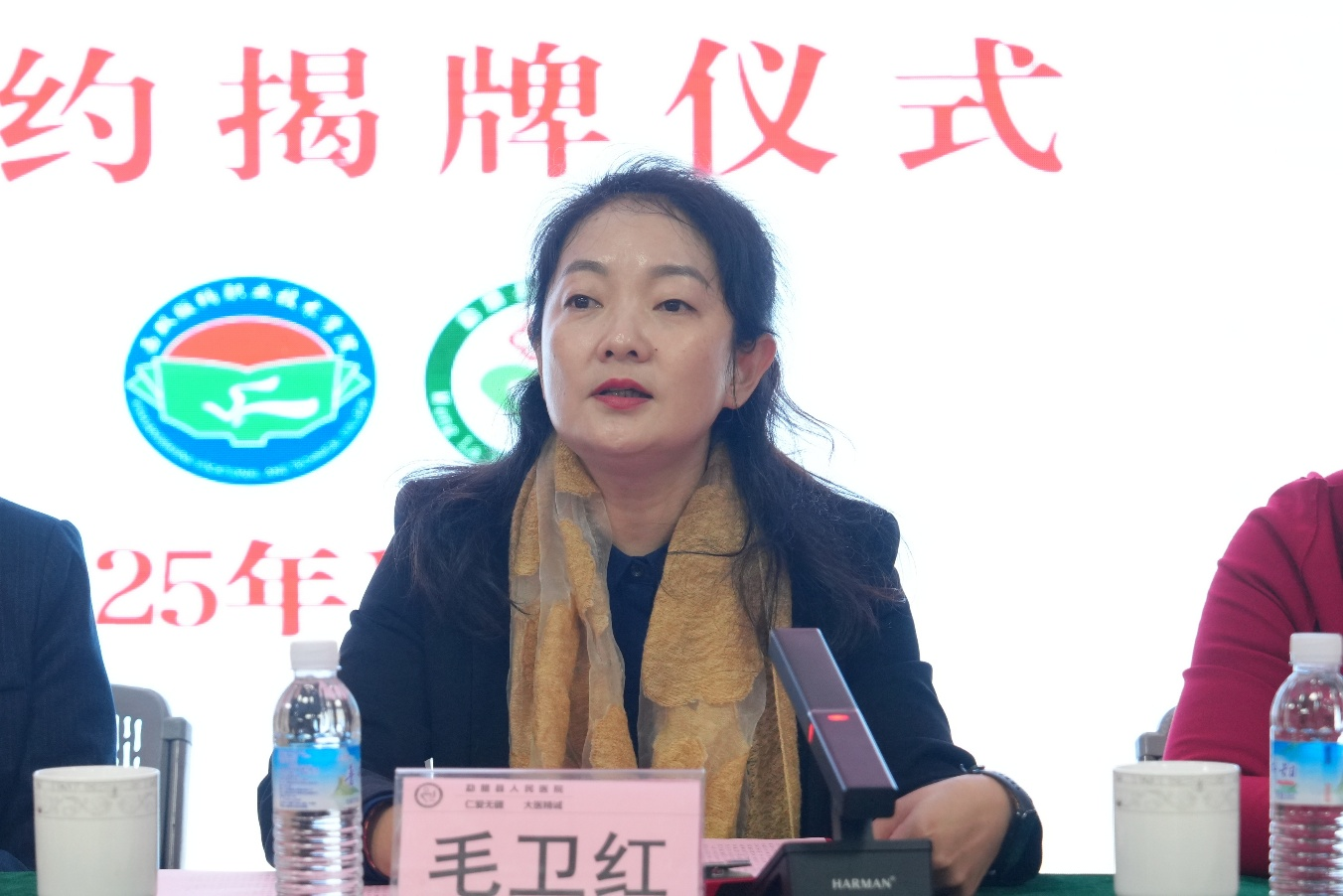 在各方共同见证下,毛卫红副院长与张学艳院长代表双方签署合作协议,并与赵云燕副部长一同为“产教融合实训基地”揭牌。