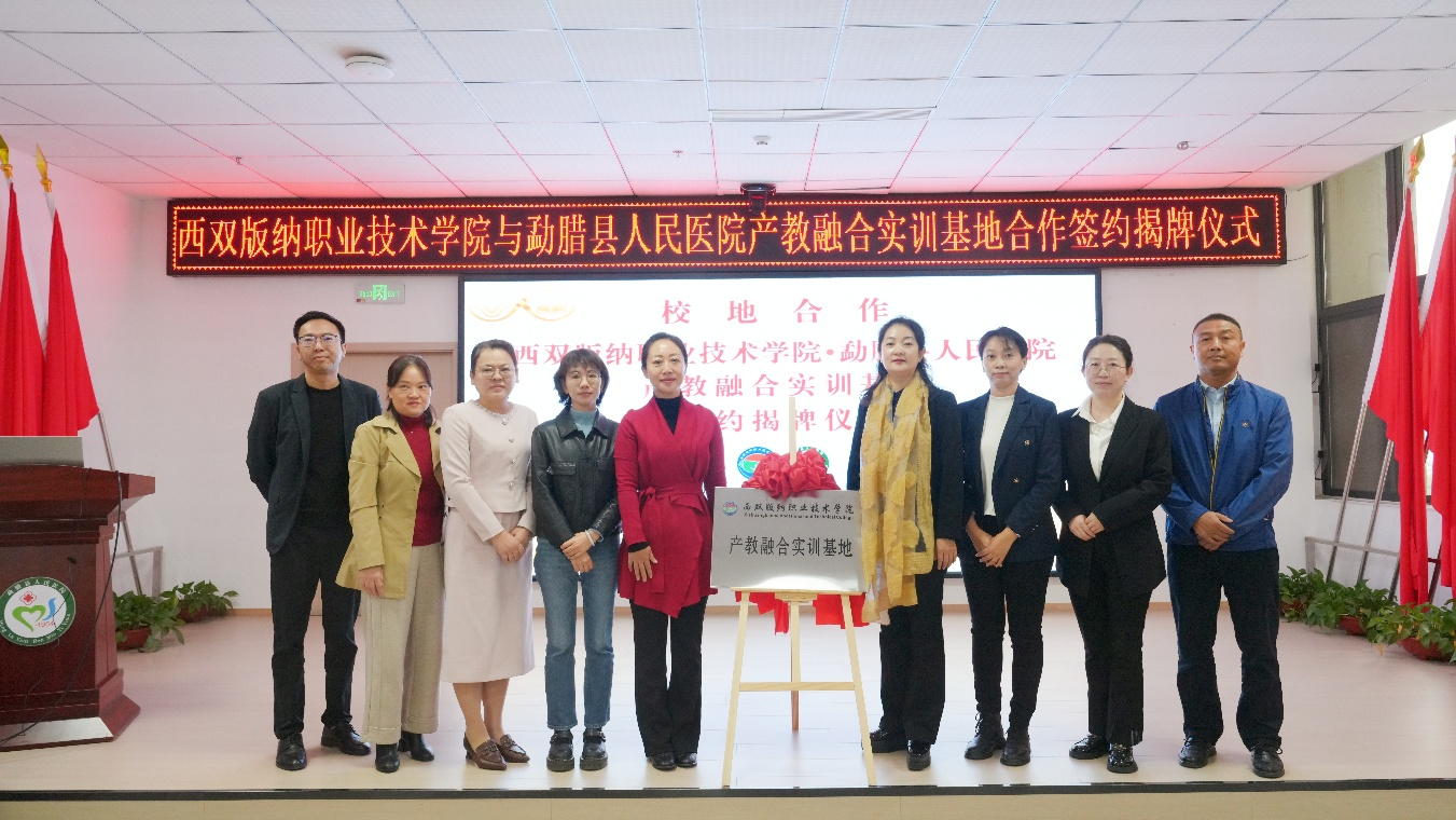 为积极响应国家健康中国战略,深化医教协同,服务地方发展,2025年12月26日,西双版纳职业技术学院与勐腊县人民医院举行产教融合实训基地合作签约暨揭牌仪式。学院党委委员、副院长毛卫红,医学院院长高婧娴、副院长彭志仙参加活动。